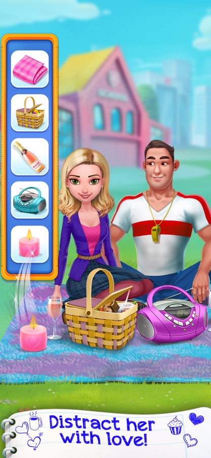 Что делать, если твоя учительница сошла с ума?! Мстить! Повеселись на полную, отмачивая самые смешные приколы, которые знаешь. Подложи ей петарду, усади на подушку-пердушку, свяжи ее шнурки и придумай другие забавы! Ой, похоже, она разозлилась ЕЩЕ БОЛЬШЕ, и тебя точно ждет серьезное наказание. Но тут тебе в голову приходит гениальный план! Сведи ее с вашим потрясающим физруком, и она забудет обо всех своих проблемах! Устрой им романтический пикник – там они поцелуются и влюбятся друг в друга!
