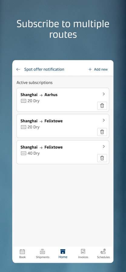 Real-time shipment information. Favorite a B/L, container, schedule or price search. Receive notifications.
