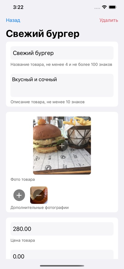 Можно отредактировать название, описание, основное фото (и дополнительные изображения), установить скидку, выбрать категорию товара и переместить его в нужные подборки.