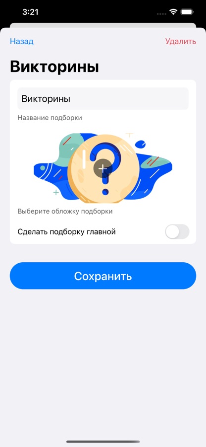 Вы сможете добавлять, редактировать и удалять подборки, устанавливать им свои описания и фото с заранее предустановленными пресетами для ваших изображений.