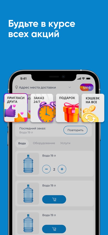 Скачайте бесплатное приложение на телефон и заказывайте чистую воду в удобное время!