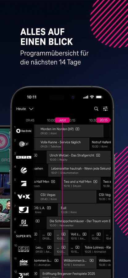 • Du bestimmst, wann dein Lieblingsprogramm läuft – live oder als Aufnahme