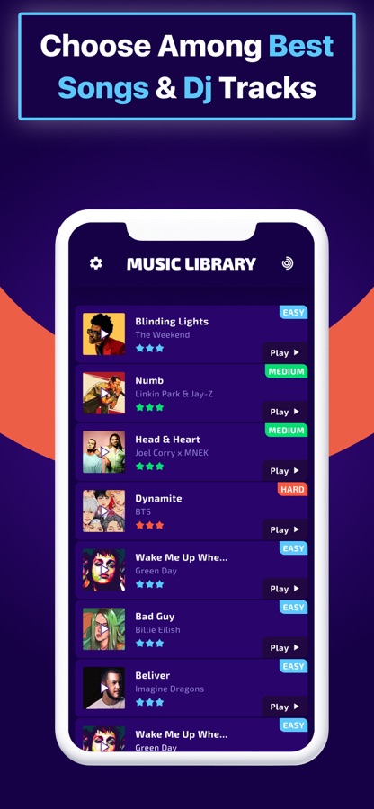 Expect to have a speeding up for each song while playing in any mode. If you are a free user, you will have 3 lives that save you when you miss the beat in a song. These songs are waiting for you to conquer. Show your talents!