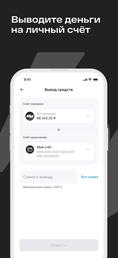 Просмотр баланса счета продавца и вывод средств на личный счет