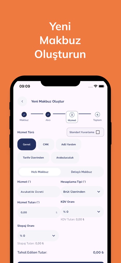 Buna bağlı olarak makbuza ilişkin Stopaj, KDV gibi hesaplamalar da Avukatın sisteme girdiği parametrelere uygun olarak otomatik olarak hesaplanmaktadır.