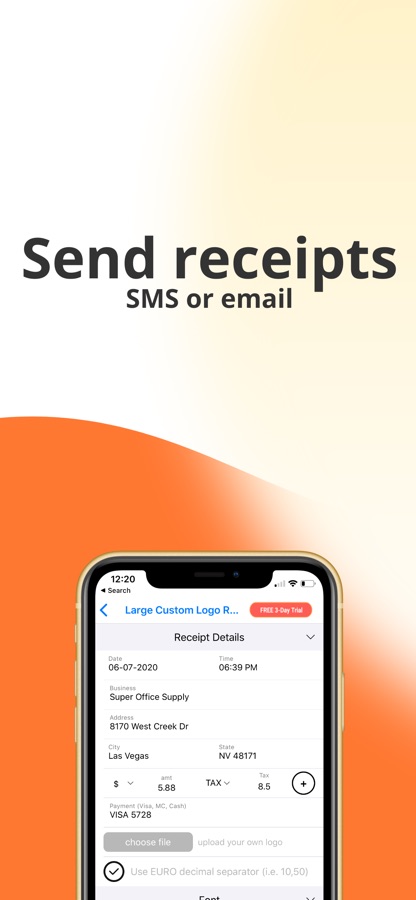 Download or share your receipt via SMS, email or Dropbox.