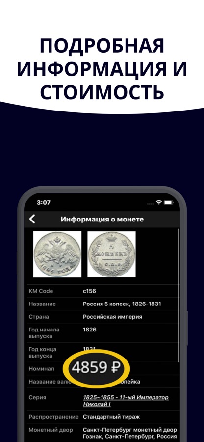 — Определяйте монеты, банкноты и жетоны по фото — в базе уже 300 000+ монет, 160 000+ банкнот и 15 000+ жетонов! Большой перечень юбилейных и регулярных монет: Рубли, Монеты СССР, Евро, Доллары, редкие и тд.