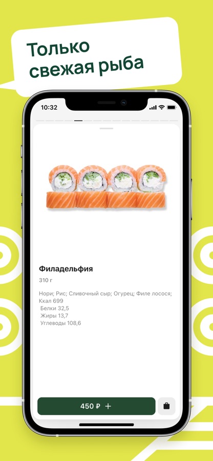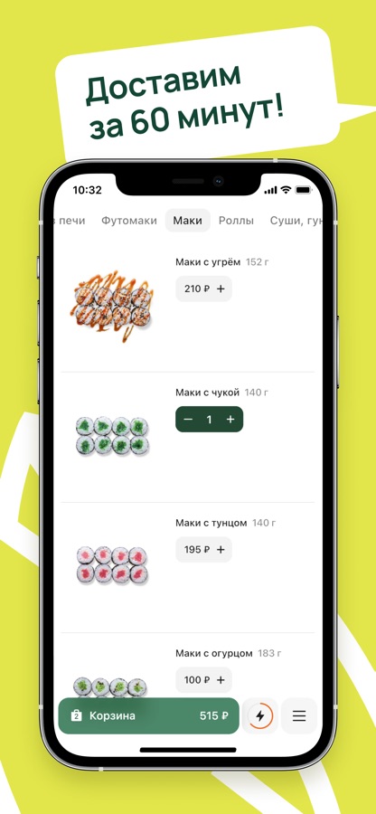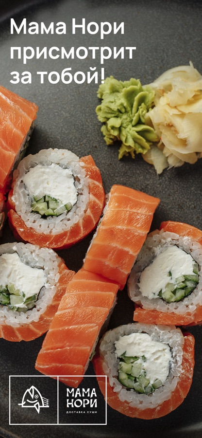 Приложение позволяет оформить заказ на доставку роллов от Мама Нори.