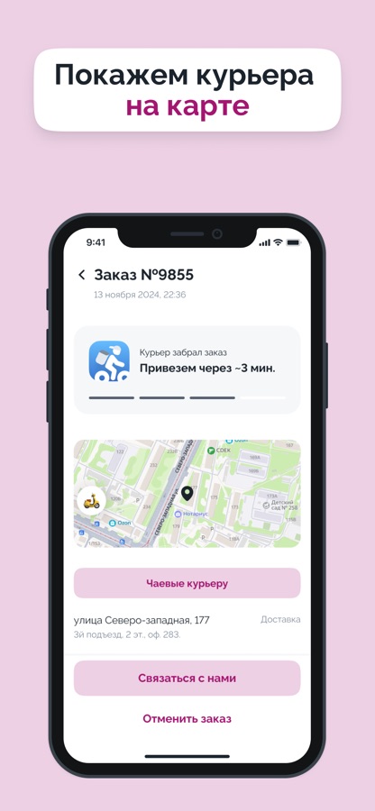 • Узнать статус своего заказа, отследить путь курьера