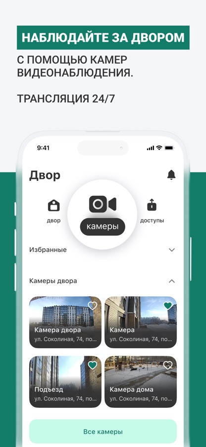— Слежение за территорией, попадающей в зону видимости камер видеодомофона.