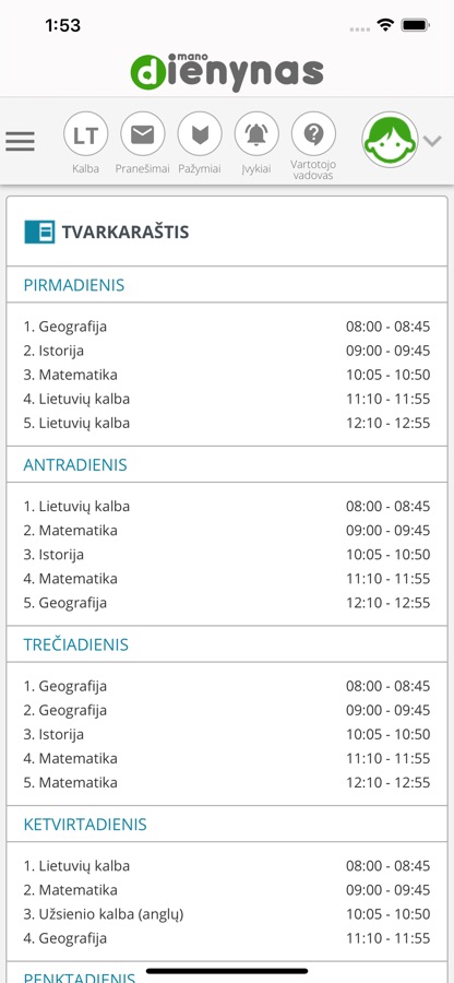 — sužinoti pamokų tvarkaraštį;
