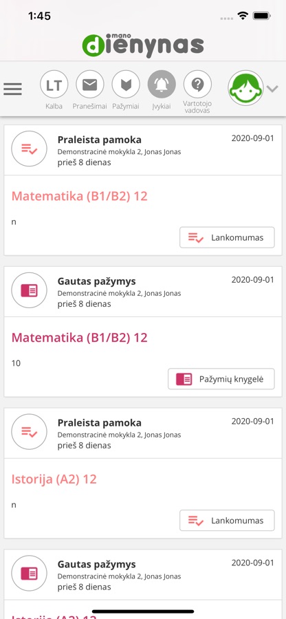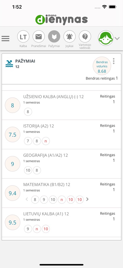 Free «Diaryium» application version for registered «Mano dienynas» students and their parents will let you to:
