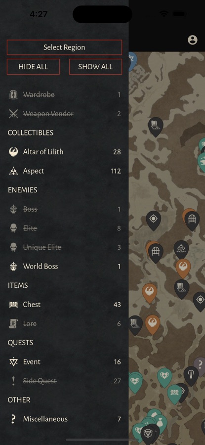 An unofficial fan-made map for D4. Find every last Collectible and get 100% region progress with this interactive map!