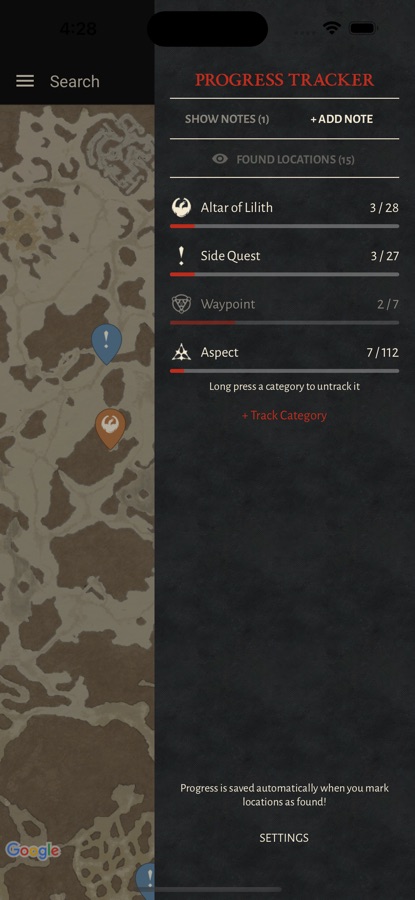 • Progress Tracker — mark locations as found and track the progress of your collectables.