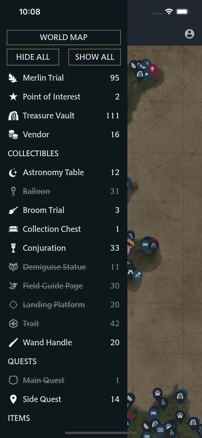 • Progress Tracker — mark locations as found and track the progress of your collectibles.