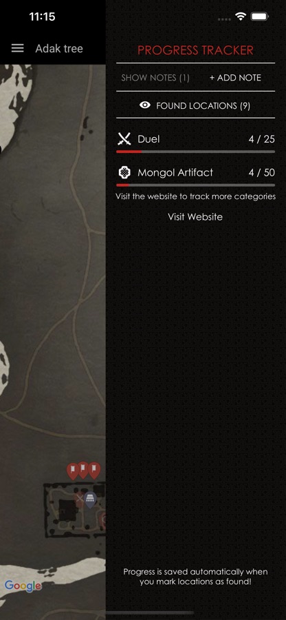 • Progress Tracker — mark locations as found and track the progress of your collectables.