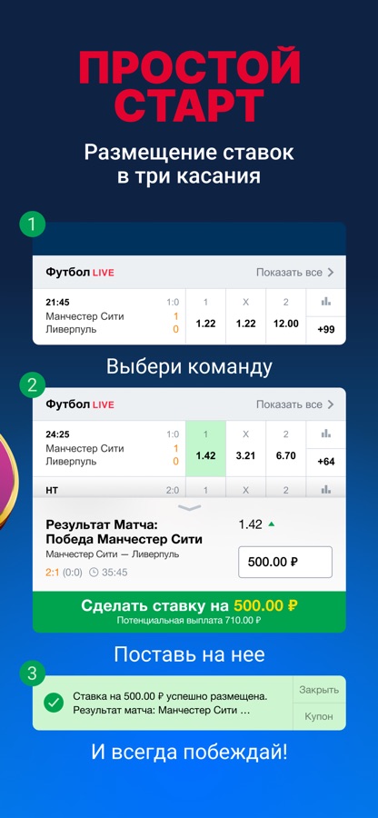 С 1997 года мы остаемся одним из лидеров букмекерского рынка России, завоевав доверие миллионов игроков. Наша компания признавалась «Самым надежным букмекером» в 2019 и 2020 годах, а в 2024 году получила титул обладателя «Лучшей линии». Мы гордимся историей партнерства с ведущими футбольными клубами не только России, но и мира. А сейчас предлагаем вам стать частью нашего невероятного сообщества.