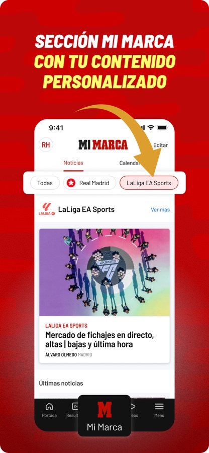 — Personalizar tu experiencia con la sección MI MARCA, eligiendo deportes, competiciones y equipos favoritos.