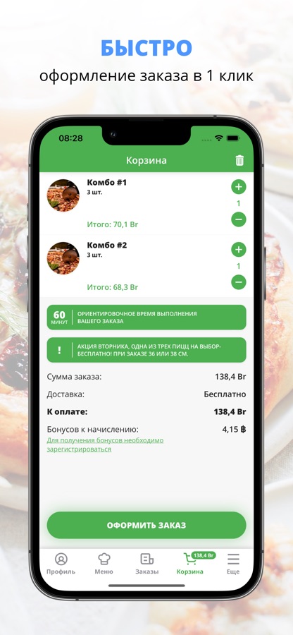 Бесплатная доставка вкусной пиццы и суши в городе Борисов.