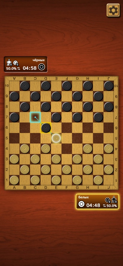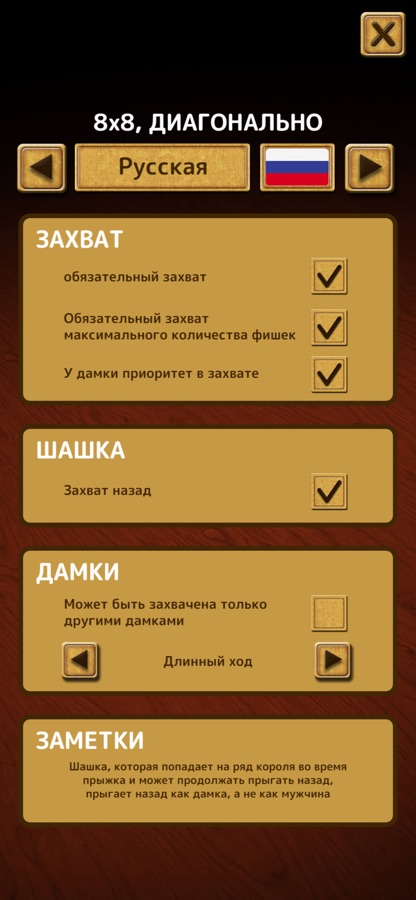 Играйте в эту увлекательную версию шашек против компьютера, другого игрока, сидящего рядом, или реального противника в любой точке мира.