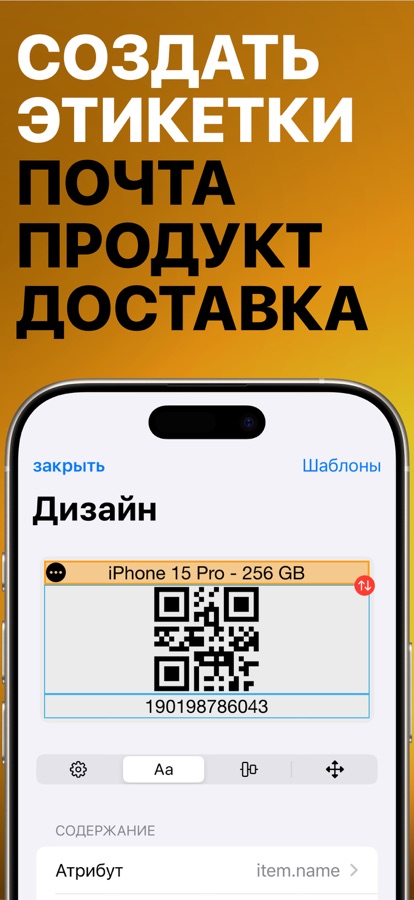 • Создавайте шаблоны с текстом, штрихкодами, QR-кодами и изображениями.
