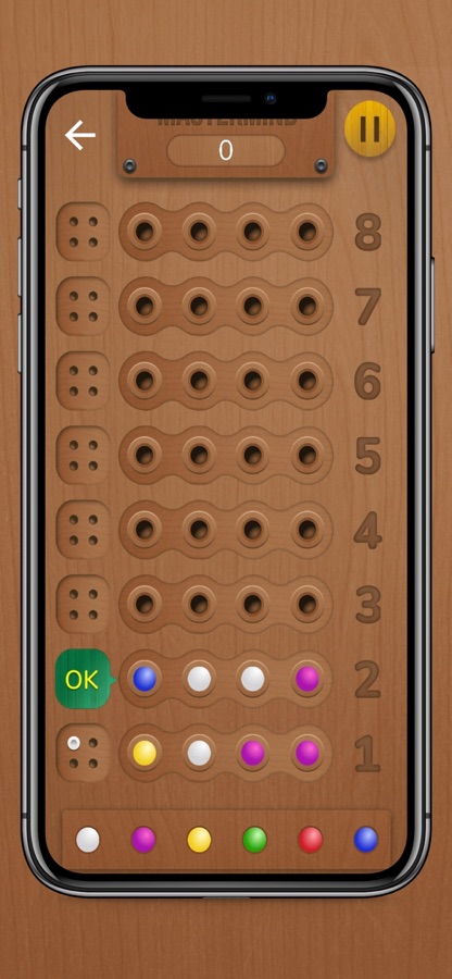 Mastermind является настольная игра который играл на борту декодирования с экрана, покрывающего четыре цветные булавки целью является угадать код и воссоздать скрытую строку в этом настольная игра iPhone. Ниже щита восемь горизонтальных рядов где игрок (взломщик кода) способен угадать цвет и размещение крытых контактов. На правой стороне каждой горизонтальной строке имеются отверстия для колышков, где программное обеспечение будет обеспечивать обратную связь для взломщик кода после каждой попытки, сделанные в угадать код: