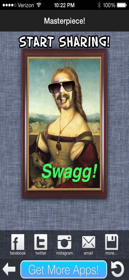 — Ты можешь сохранить свое произведение, опубликовать на Facebook, Instagram, Twitter, Рhotoapplink или скопировать его для отправления по SMS!