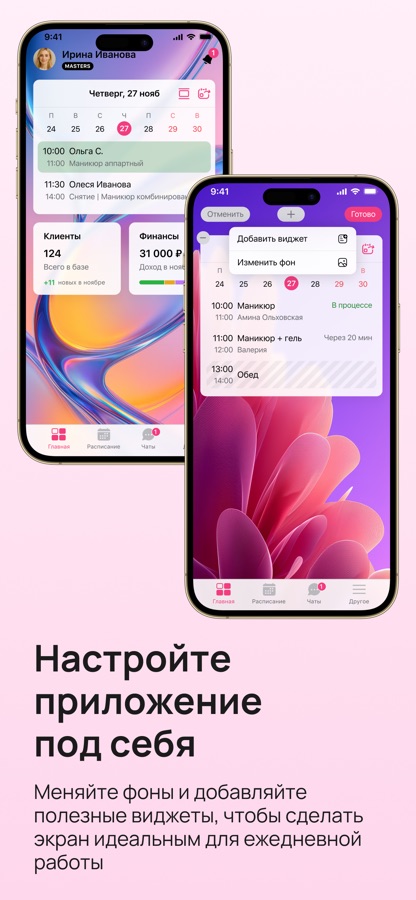 Приложение Masters для мастеров создано специально для бьюти-индустрии, поможет вам управлять расписанием, контролировать доходы и расходы, запись клиентов, а также автоматизировать напоминания и вести календарь рабочих смен.