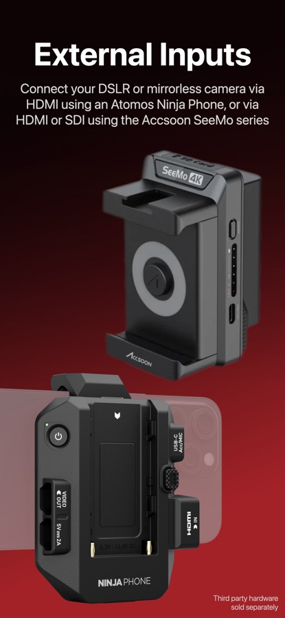 • HDMI input via Atomos Ninja Phone support