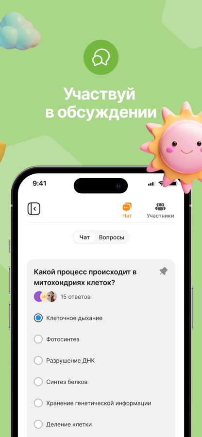 — Достигайте результата. Вовлекайтесь в урок через тесты и опросы, отправляйте реакции и поднимайте руку.