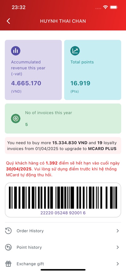 + Đổi điểm lấy quà và phiếu mua hàng