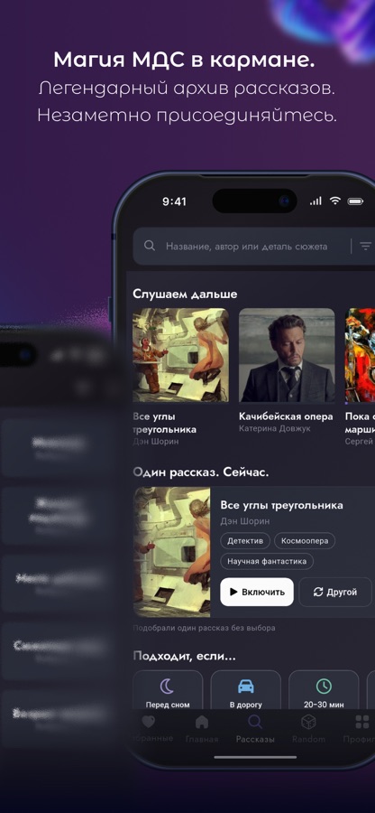 Приложение МДС Коллекция открывает доступ к огромной библиотеке рассказов, записанных за весь период существования передачи. Сюда не входят рассказы, записанные эксклюзивно для SoundStream.