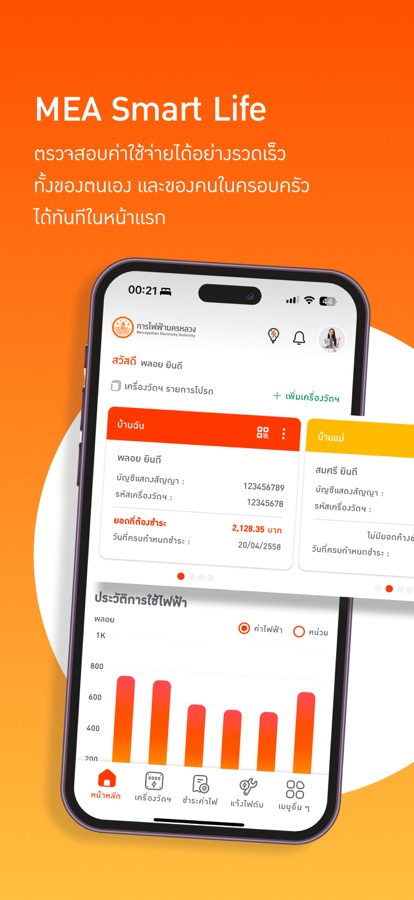 MEA Smart Life Application สำหรับตรวจสอบค่าใช้ไฟฟ้า โดยสามารถตรวจสอบวันที่จดเลขอ่านค่าไฟฟ้า ตรวจสอบค่าไฟฟ้า วันที่ครบกำหนด โดยมีฟังก์ชันการทำงานดังนี้