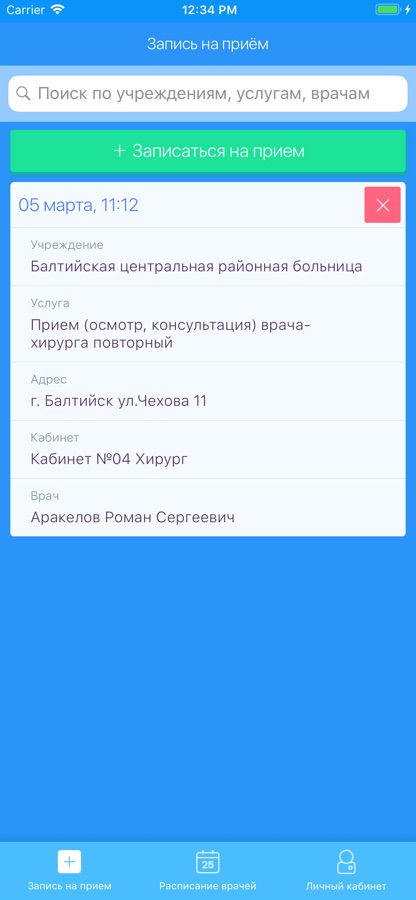 Приложение предназначено для записи на прием к врачу в медицинские учреждения Калининградской области, обслуживающие граждан по полисам ОМС.