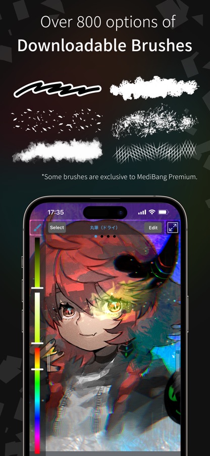 В MediBang Paint на iPhone и iPad вы получаете 180 кистей по умолчанию, которые легко настраиваются под любые задачи. Для тех, кому нужны дополнительные возможности, подписка MediBang Premium открывает доступ к ещё 700 кистям, 1000 скринов (фоновых текстур) и 60 профессиональным шрифтам для манги. Кисти можно адаптировать до мельчайших деталей: регулировать размер, прозрачность, угол, разброс, а также создавать собственные варианты. Благодаря оптимизации для iOS, даже сложные кисти работают без задержек, а Apple Pencil на iPad обеспечивает идеальную чувствительность к нажатию и наклону.
