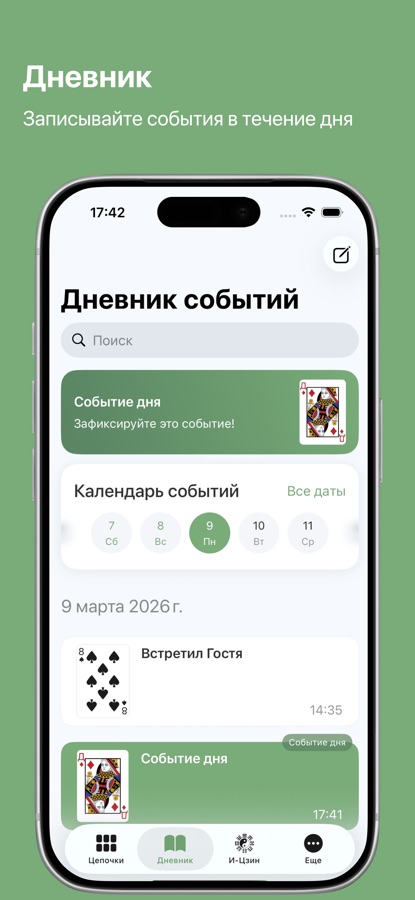 Фиксируйте события в течение дня, чтобы лучше понять карты и их значения, или просто пересматривайте прошедший день.