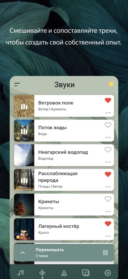 расслабляющими звуками для медитации во сне. От бриза, сверчков и костров до щебетания птиц и водопадов — вы можете по-настоящему расслабить свой разум и душу с помощью нашей коллекции звуков и простой в использовании звуковой машины