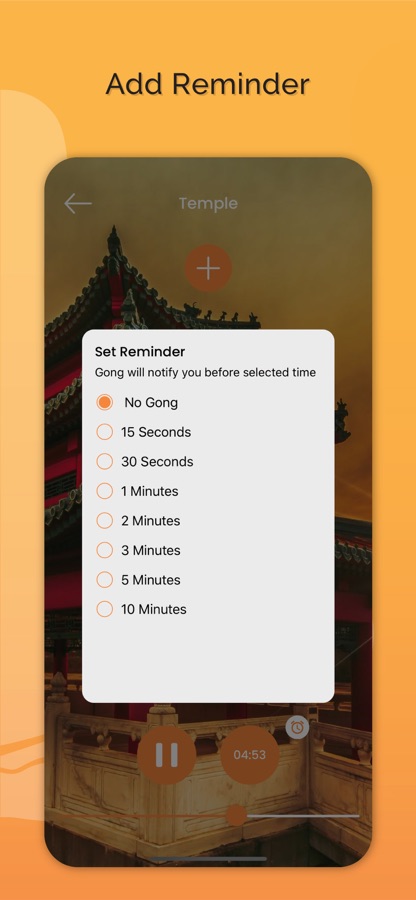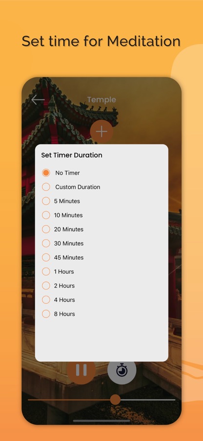 «Музыка для медитации» также поддерживает функцию таймера, чтобы вы могли установить необходимое время для воспроизведения музыки и полностью сосредоточиться на своем пути медитации.