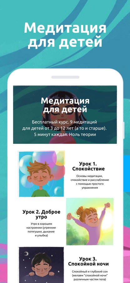 Бесплатное приложение и курс «Медитация для детей», призванный доступным языком обучать детей основам медитации через детские медитации в игровой форме.