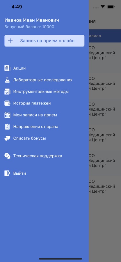 -Лабораторные исследования. Результаты всех анализов за всё время посещения клиники теперь можно получить из приложения.