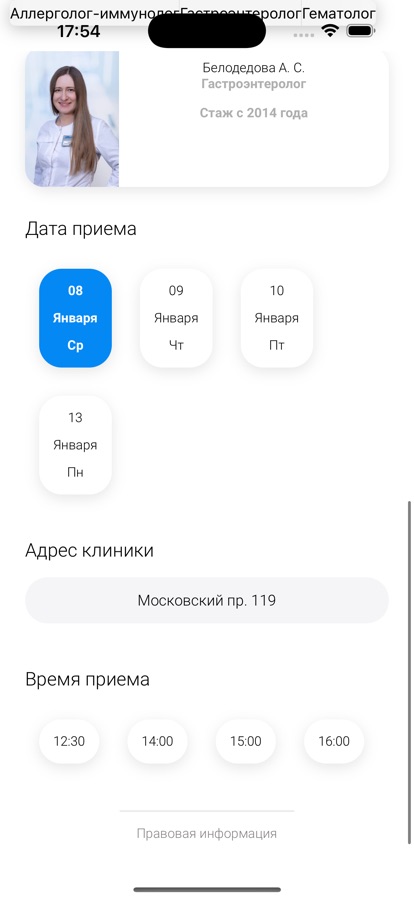 Попасть на прием стало еще проще! С помощью приложения Вы можете быстро узнать ближайшее свободное время приема врача во всех филиалах нашей сети, записать на прием себя и своих близких и отслеживать статус Ваших записей.