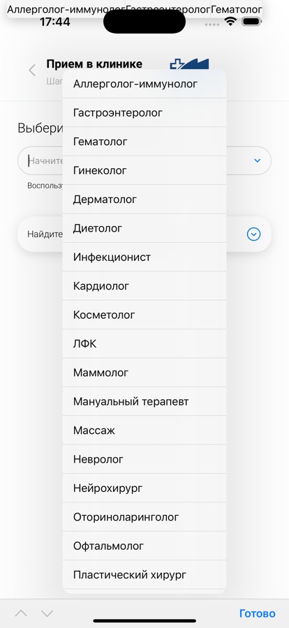 «Приемы» — записать к врачу себя и близких.