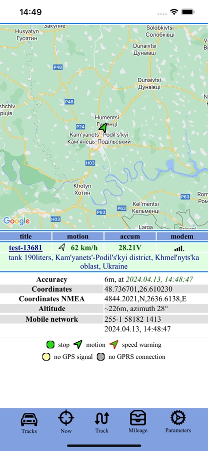 Cистема спутникового мониторинга MEGA-GPS позволяет отслеживать текущее положение транспортного средства, пробеги, маршруты, остановки, напряжение аккумулятора и другие параметры.