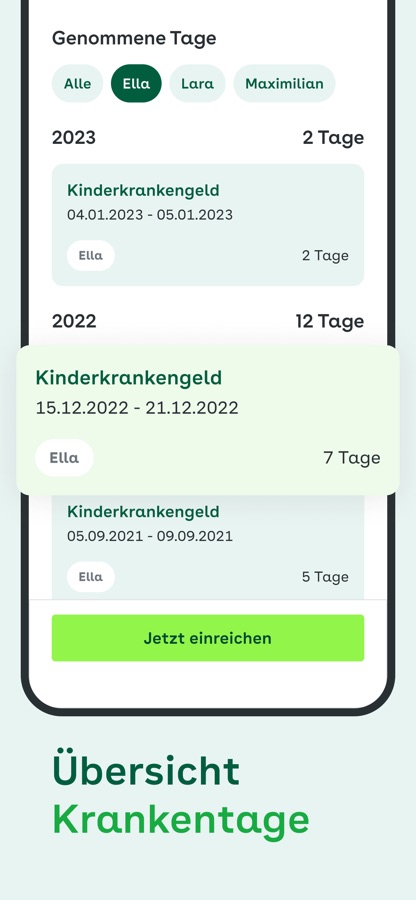 Sehen Sie Ihre Krankmeldungen und Kinderkrankengeldtage der letzten vier Jahre auf einen Blick.