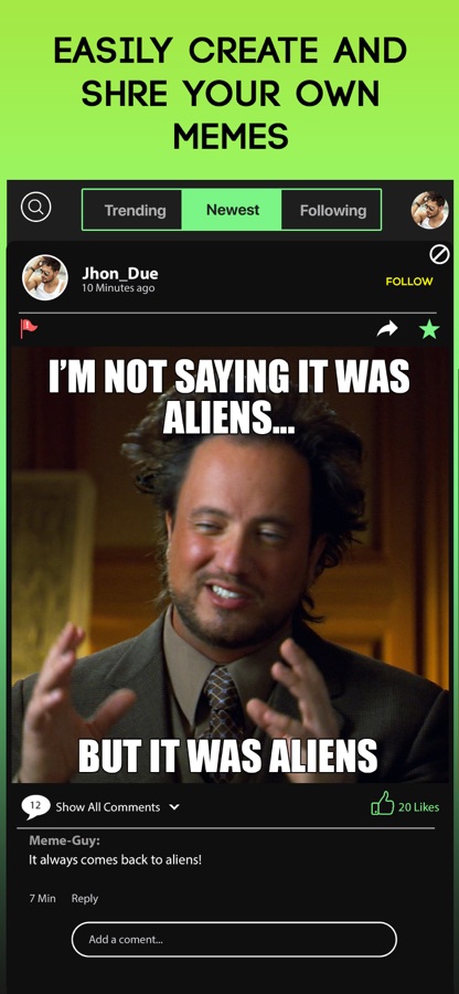 Memes can also be saved to your gallery and shared on email and text as well.