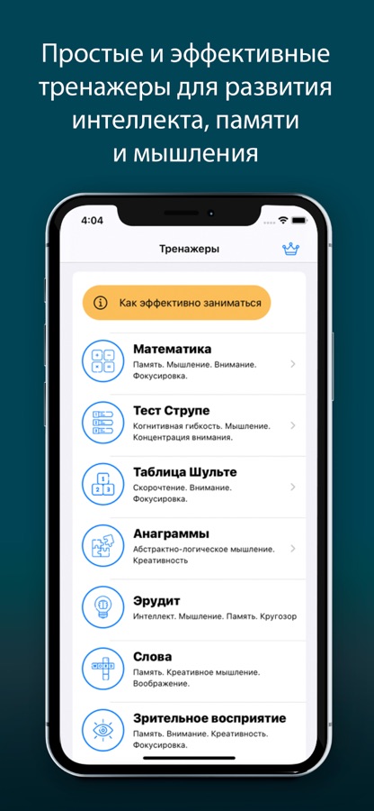 Memoris – приложение для развития памяти, охватывающее все ее виды, включает 9 тренажеров памяти: