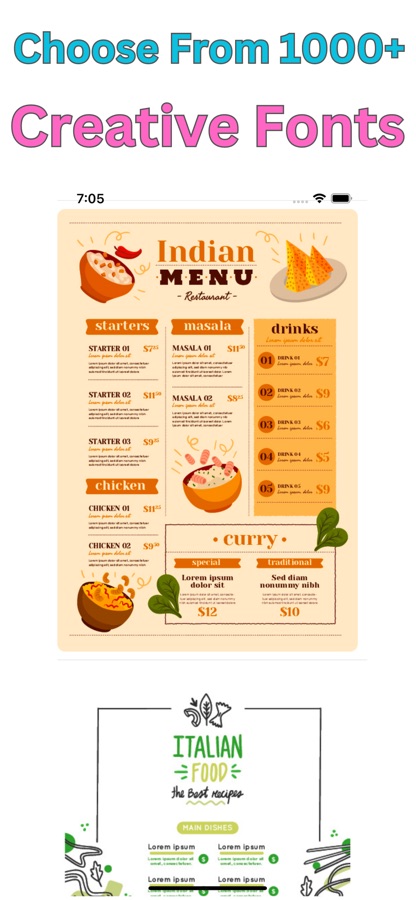 With its intuitive interface and user-friendly features, Menu Maker allows you to craft captivating menus in just a few taps, even if you have no design experience. Choose from a wide range of over 1000+ ready-made menu templates, each crafted to perfection by professional designers. These templates cover various occasions and themes, ensuring that you’ll find the perfect match for your establishment.