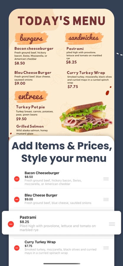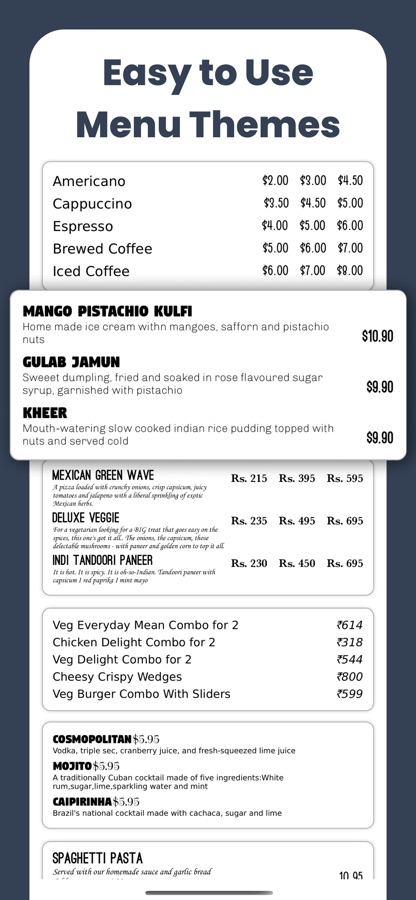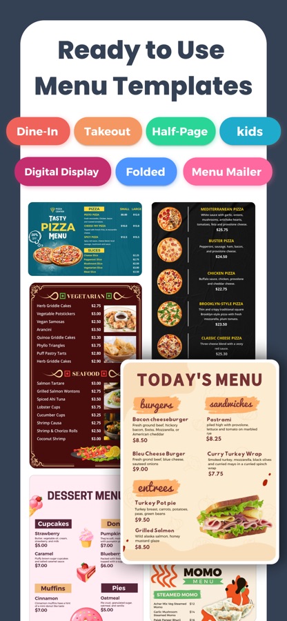 Ready-to-use Menu Templates: Pick from lots of different templates that you can easily customize to fit your style.