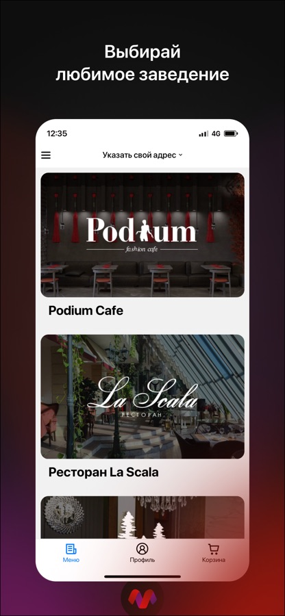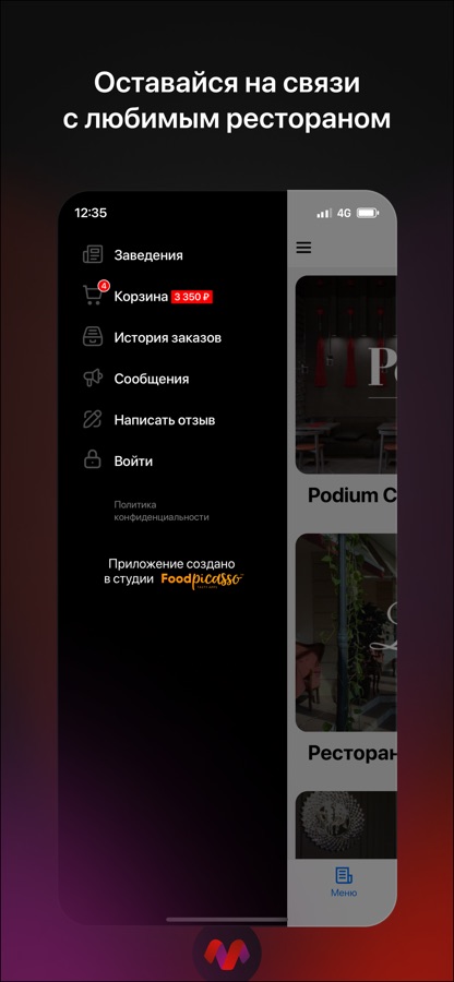 В приложении Вы можете сделать доставку еды, напитков, букетов и получить интересующую Вас информацию обо всех наших заведениях, событиях и действующих акциях.