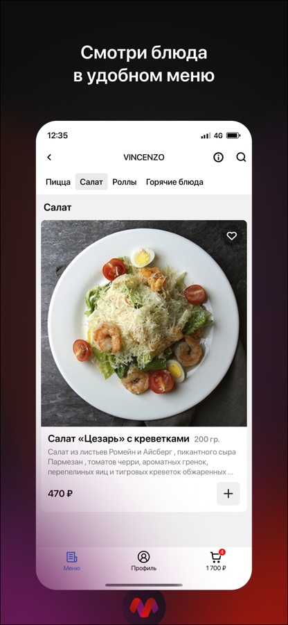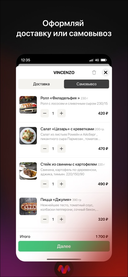 — Выберите любимые блюда из меню или букеты, закажите и оплатите их любым удобным способом всего в несколько касаний;